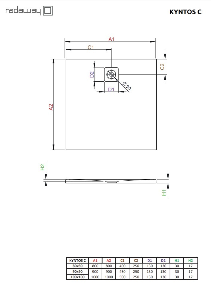 Căzi de duş Radaway Kyntos C. Căzi de duş pătrate