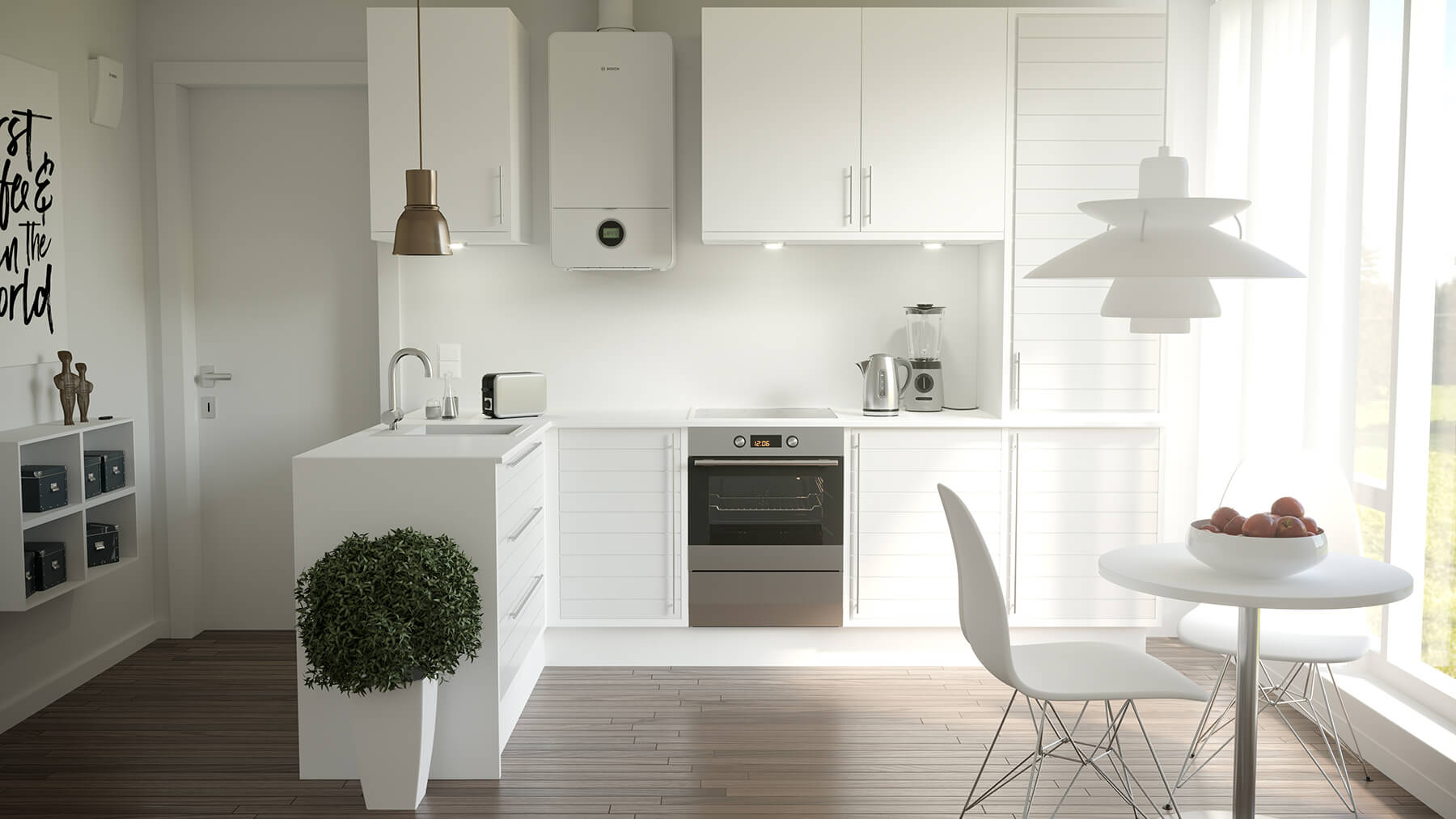 În general, spațiile mici aduc cu sine provocări. Cu toate acestea, Bosch a acordat atenție fiecărui detaliu, iar în cazul centralei Condens 2200 W, design-ul face cu adevărat diferența. Având dimensiuni reduse, centrala poate fi montată în cele mai mici spaţii locative.